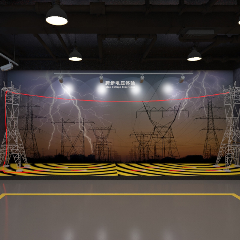系统通过多传感器监测人在相对区域内的脚步位置,计算两脚之间的间距,从而计算出跨步电压值,在软件系统中进行正确显示与画面模拟。让体验人员,认识到跨步电压的形成与其危险性。