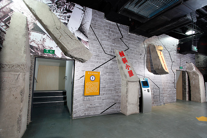 地震发生后,地面倾斜角度大,行走困难。通过在倾斜小屋里行走,体验者可以体验震后室内环境,适应房屋倾斜时人行走的感觉,学习地震逃生。