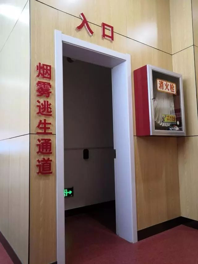 模拟烟雾逃生通道,为体验者提供了一个模拟的逃生场所。发生火灾时,过量吸入有毒烟气成为致人死亡的一个重要因素,而此逃生通道的作用就是模拟火灾发生时浓烟充斥的实际场景,使体验者切实掌握如何在此环境中正确逃生。
